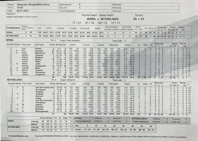 7月7日讯塞尔维亚男篮近日与荷兰男篮进行了两场热身赛,但均是空场进行,不对外开放。